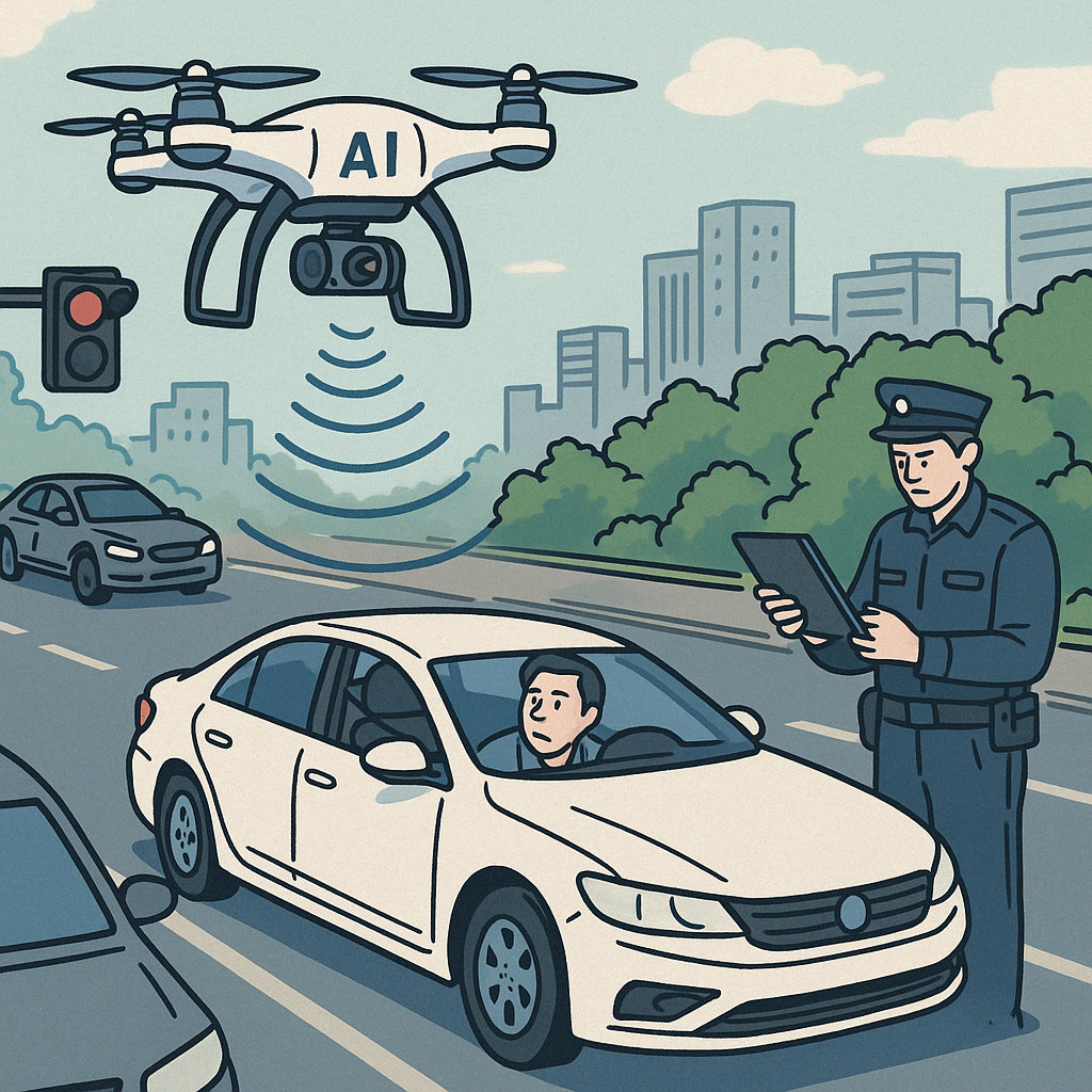 드론에 탑재된 AI 영상 분석 기능은 차량 흐름과 패턴을 학습해 위반 가능성을 예측합니다. 영상은 지상 기동 요원에게 전송되며, 단속 여부는 수집된 자료에 기반해 판단됩니다.