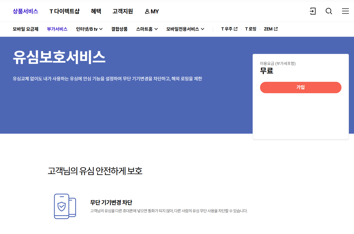 - 로밍 서비스 사용자는 유심보호서비스 가입 시 해외 사용에 제한이 있을 수 있으니 사전 확인 필수.