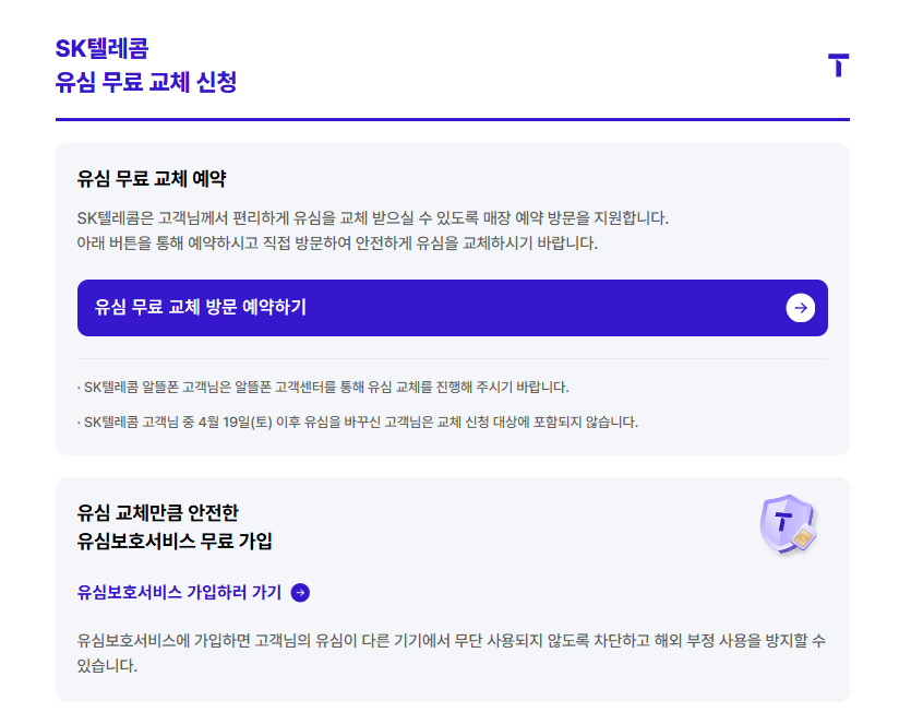지금 바로 유심 교체 예약으로 내 개인정보를 지키세요!